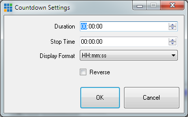 To specify the countdown parameters click the Settings button to bring up the Countdown Settings window.